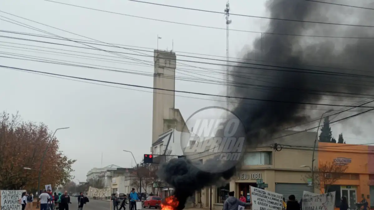 Nada de eso ocurrió. Los manifestantes (alrededor de una veintena) esta vez llevaron su protesta al corazón del centro lapridense. En el cruce de las avenidas, quemaron neumáticos, exhibieron pancartas, pegaron afiches en los semáforos, en el mástil de la plaza y en alguna casa particular cercana al centro