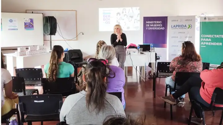 Para brindar esta capacitación llegaron a nuestra ciudad la Directora para la sexta sección del Ministerio de Mujeres bonaerense, Ximena Martel y la Directora de Abordaje Territorial, Nerina Favale, quien estuvo a cargo de la capacitación.